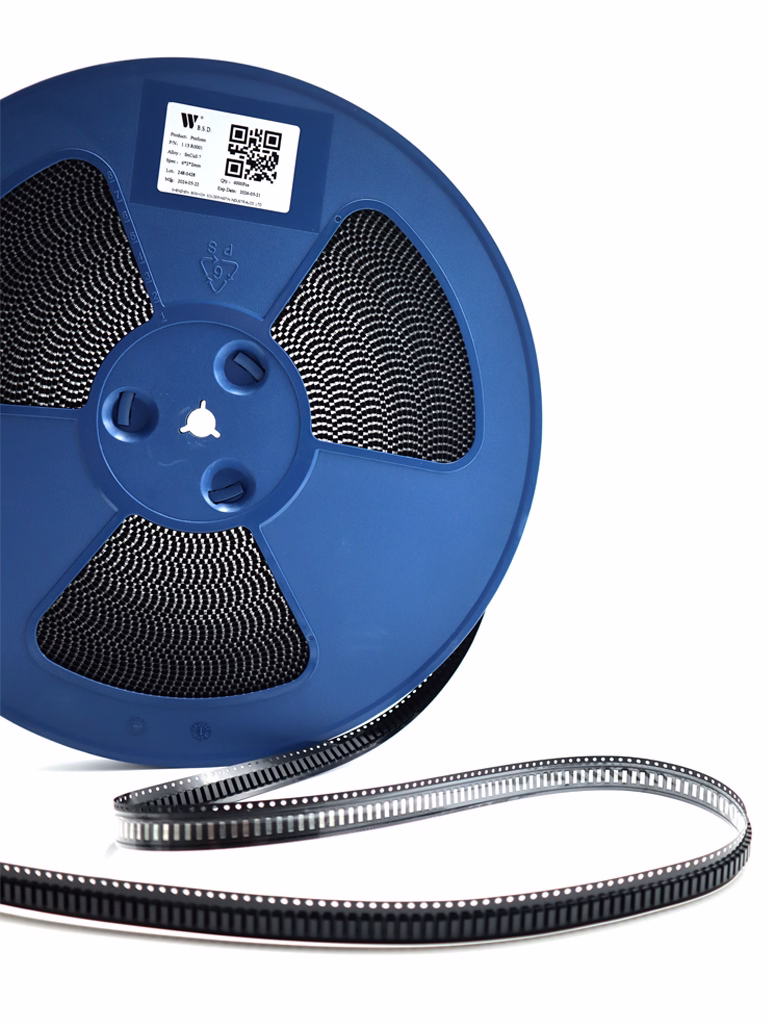 我司支持不同的焊料包装方式,提供适配焊料形状与客户装配使用需求的包装。其中,预成型焊带以卷盘为单位进行包装, 卷盘尺寸取决于焊料尺寸,其内孔尺寸、法兰片大小可根据客户端自动化机台装配的要求进行定制。